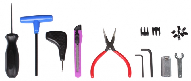 In der Werkzeugschublade ist genügend platz für Ihre Besaitungsutensilien