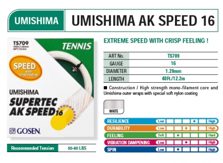 sharp hitting feel and high resilience which monofilament profides. "AK PRO