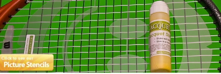 Schablone einfach auf die Besaitung legen und mit einem Saiten Signierstift (Stencil Ink) die freien Felder ausmalen. Die Stifte gibt es in vielen Farben bei uns im Shop. Beispiel: