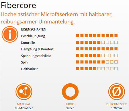 Diese neue Multifilamentsaite bietet höchste Armschonung und Beschleunigung durch eine Microfaserkern, die glatte und reibungsarme Außenschicht sorgt außerdem für guten Snapback.