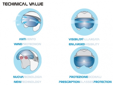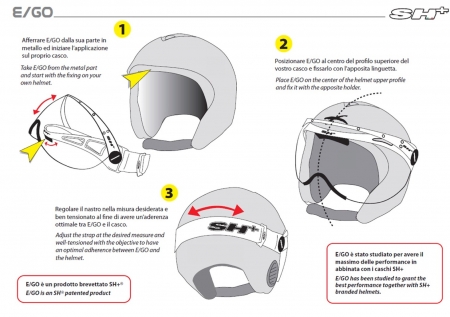 - Visierbrille wird per Elastikband wie eine Skibrille befestigt.