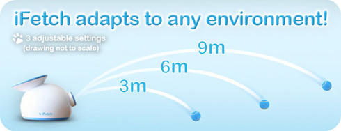 - iFetch wirft die Bälle in verschieden einstellbare Auswurfweiten aus (drei, sechs oder neun Meter - mit ganz weichen Bällen kürzer)